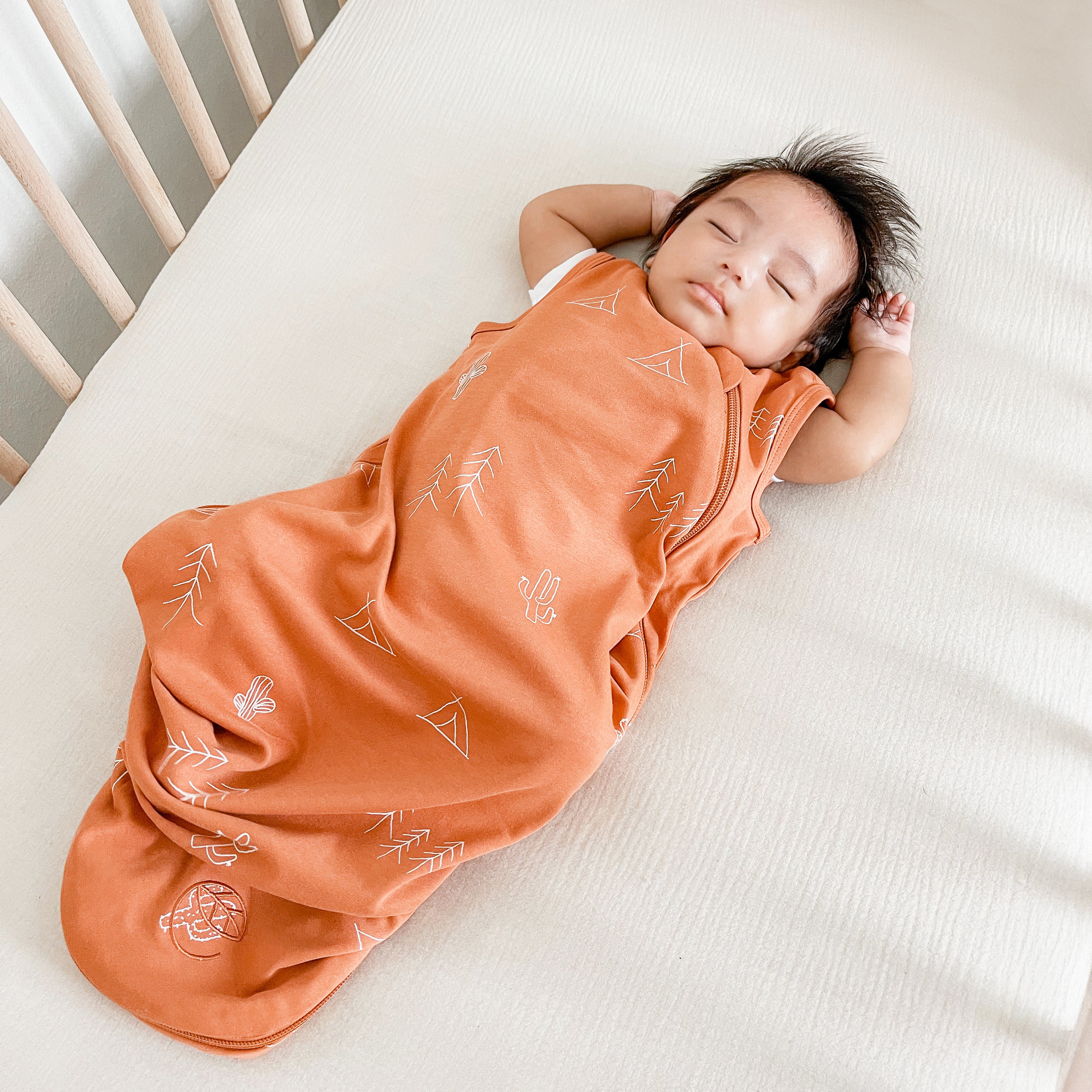This baby sleeping bag replaces loose blankets in the crib. It creates a safe and sound sleep for baby and a peaceful night for parents.